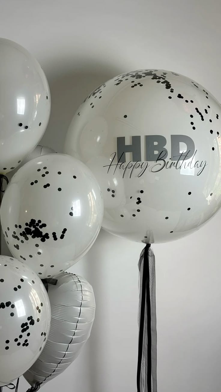 Personalised Helium Balloons Clear with White Latex, Confetti, Ribbons and Customize Sticker and Double Layered Latex Bunch White with Confetti and White Heart-Shaped Foil - Perfect for any Occasions