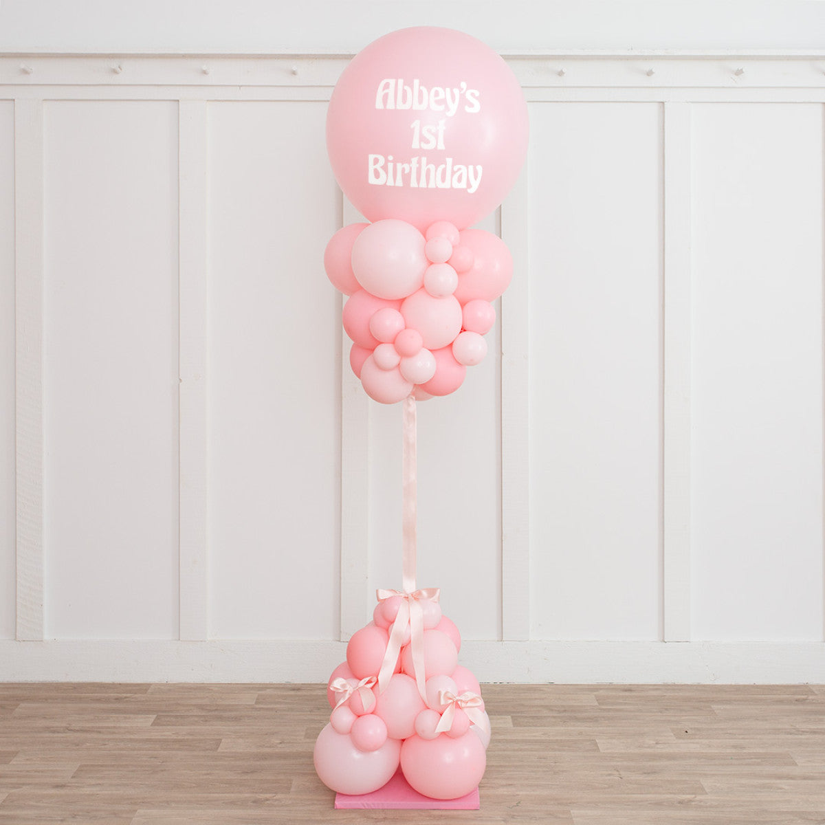 Personalised Pink Balloon with Pink Ribbon Accents Pillar/Column/Tower – Perfect for Any Celebrations
