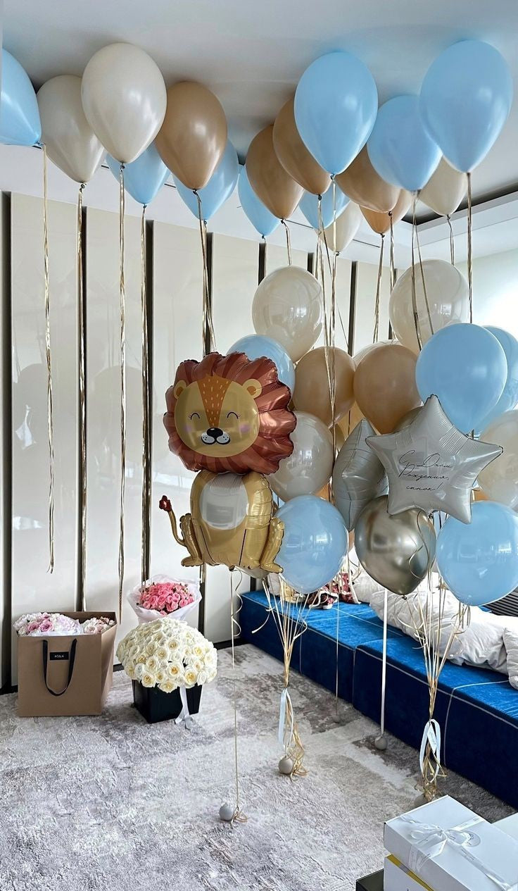 White Star with Customize Sticker, Lion and Latex Ceiling and Bunch Balloons Beige, Brown and Blue - Safari and Jungle-Themed Perfect for special occasions!